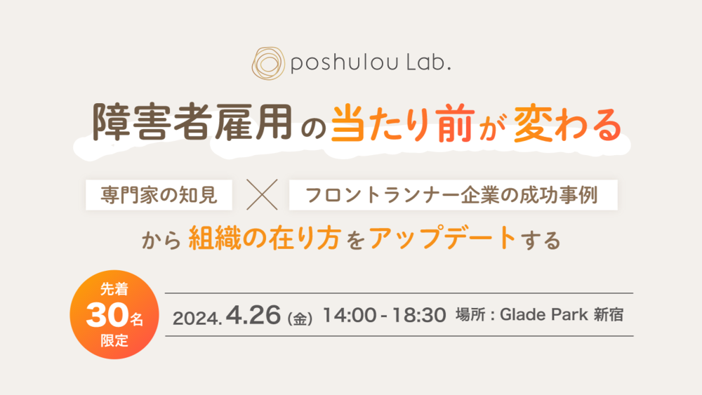 TMJ、「専門家の知見」×「フロントランナー企業の成功事例」から自社の障害者雇用をアップデートするセミナー「poshulou Lab.(ポシュロウラボ)」を2024年4月26日(金)に開催