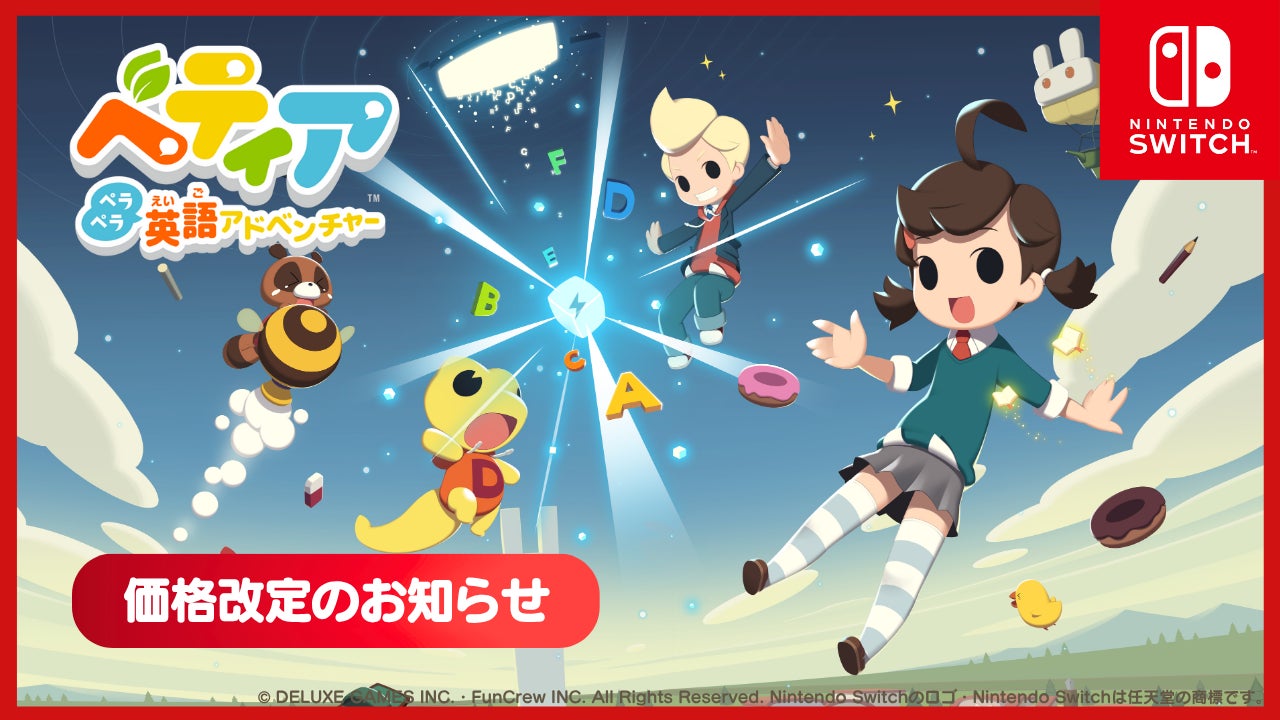 株式会社でらゲー(代表取締役:家次栄一)は、遊びながら英語が自然に学べるNintendo Switch™向け体験型英語学習ゲームソフト『ベティア ペラペラ英語アドベンチャー』について、ダウンロード版のソフト本編と追加コンテンツの2作品、及び2作品をまとめたバンドル版の価格改定を、2025年7月15日(火)より実施いたします。