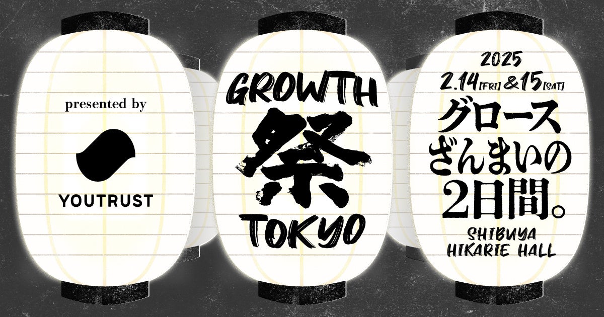 日本のキャリアSNSおよびネットワークリクルーティングサービスの「YOUTRUST」を開発・運営する株式会社YOUTRUST(本社:東京都渋谷区、代表取締役CEO:岩崎由夏)は、「GROWTH 祭 TOKYO 2025」を2025年2月14日(金)・15日(土)に開催することをお知らせいたします。