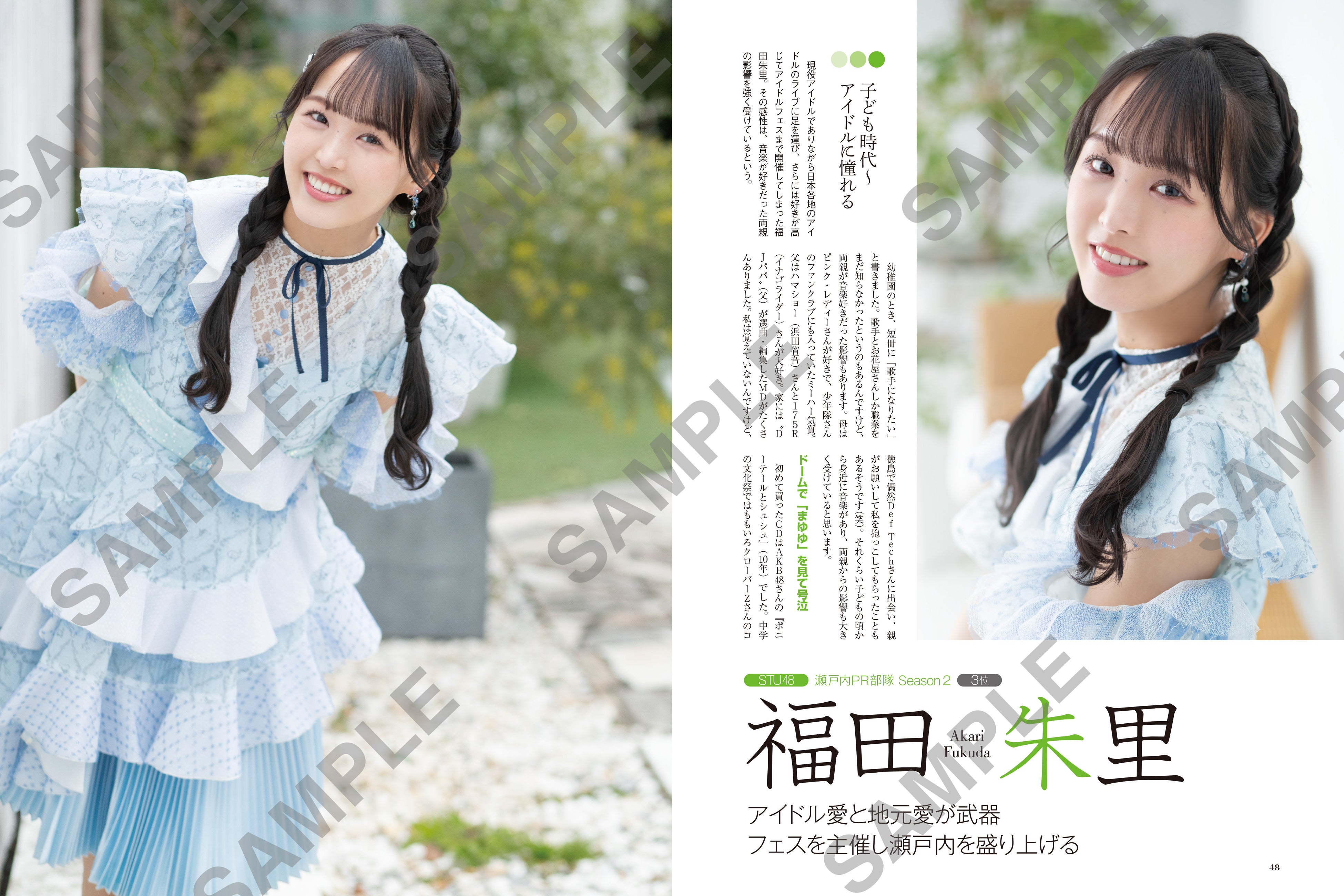 また、全7名の、「STU48 瀬戸内PR部隊 Season2」での衣装、これまでの活動で1番お気に入りの衣装、私服の3ポーズで、撮り下ろしカットも盛りだくさん。
