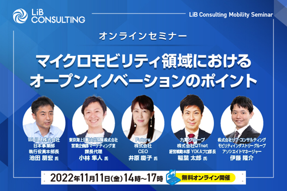 株式会社リブ・コンサルティング(本社:東京都千代田区、代表取締役:関 厳)は、自動車部品業界を対象とした、「マイクロモビリティ領域におけるオープンイノベーションのポイント」をテーマとしたウェビナーを2022年11月11日(金)に開催いたします。