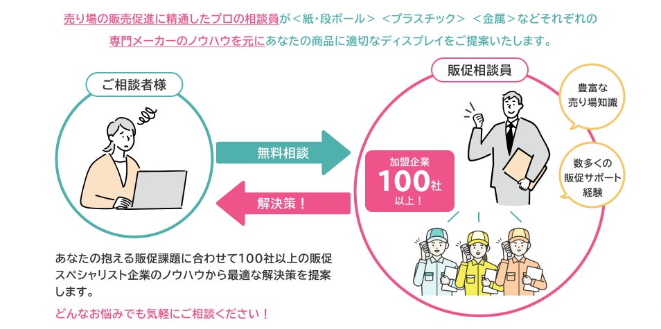 販促の「困った」をメンバー企業100社のノウハウで解決する「ディスプレイ什器相談室」サービスの提供を開始