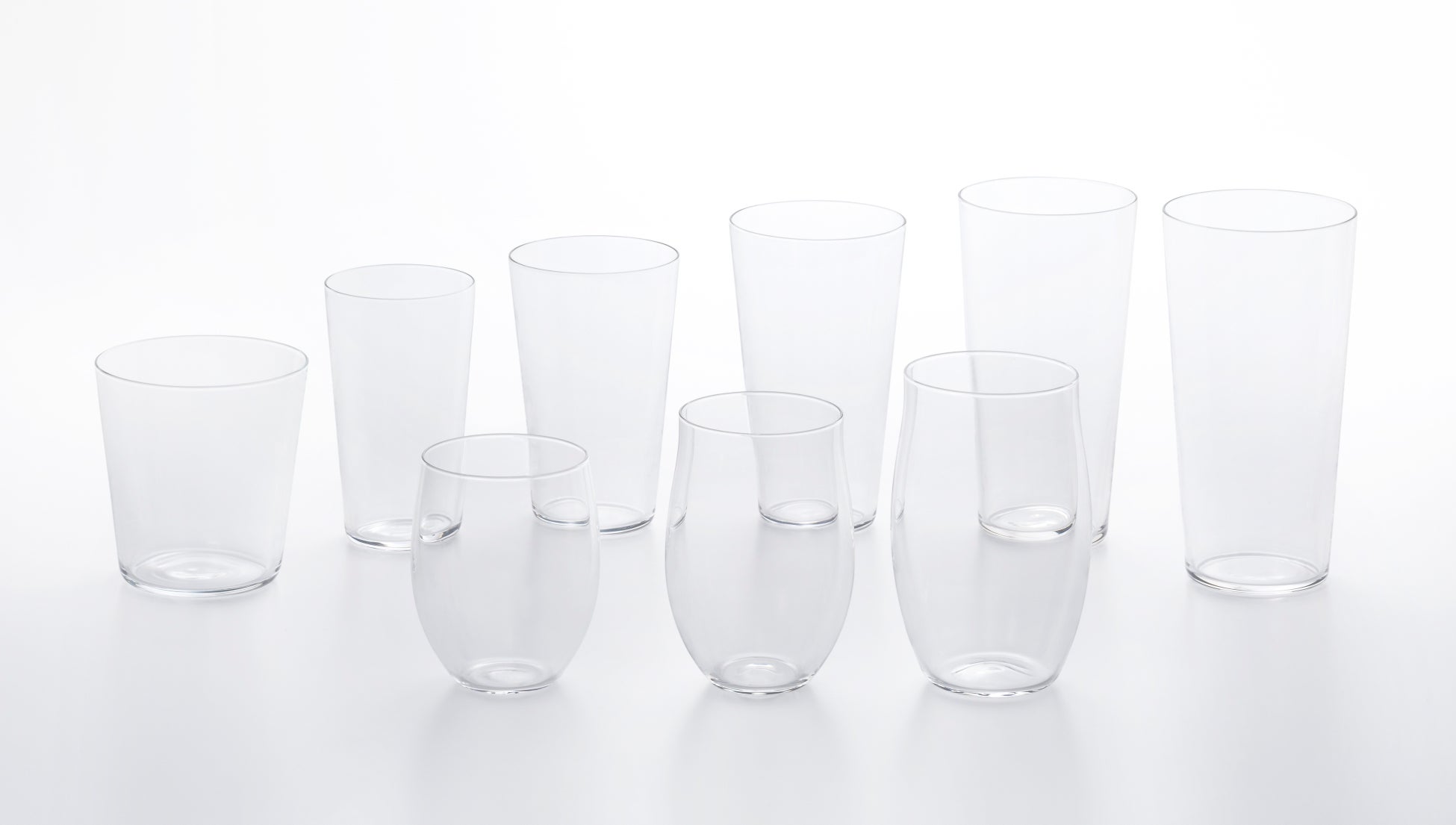 本シリーズはすべて、ワイングラスを成形する機械で製造しており、「口当たりの良さ」と「扱いやすい強度」を両立する最適な薄さを追求しています。口部は約1.2mmの薄さを実現し、飲みものの風味を繊細に引き立てます。さらに、当社独自の全面イオン強化(ION-PRO-TECT)により物理的衝撃や食器洗浄機への耐久性を高め、薄吹きながら普段使いしやすい強度を確保しました。適度にすぼまった形状が香りを引き立て、最適な容量設計とともに飲みものをよりおいしく楽しめます。