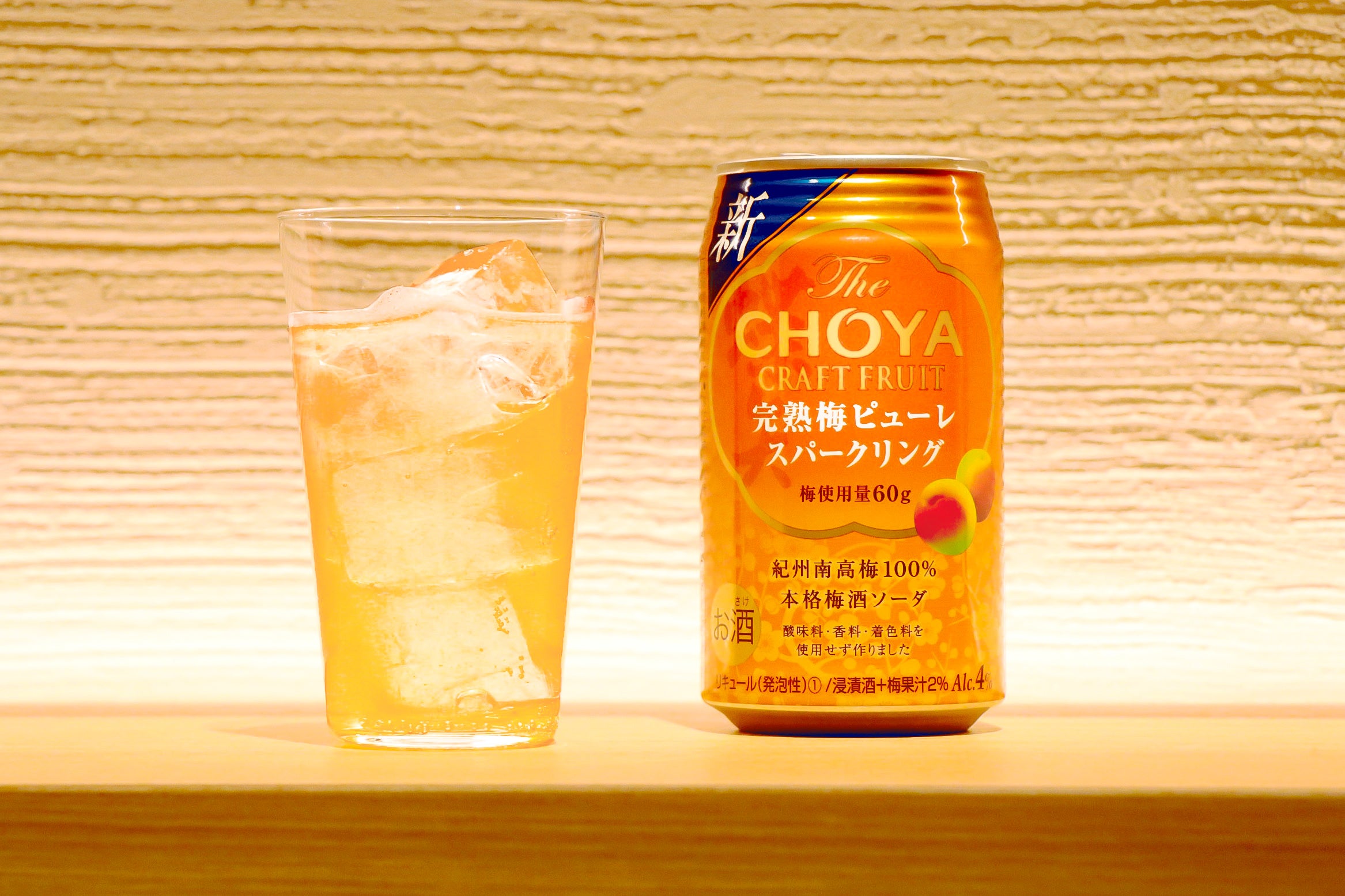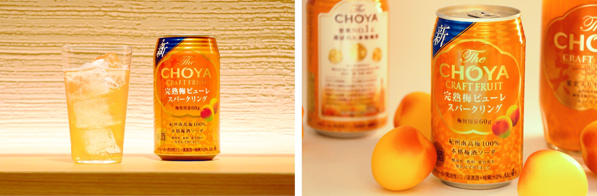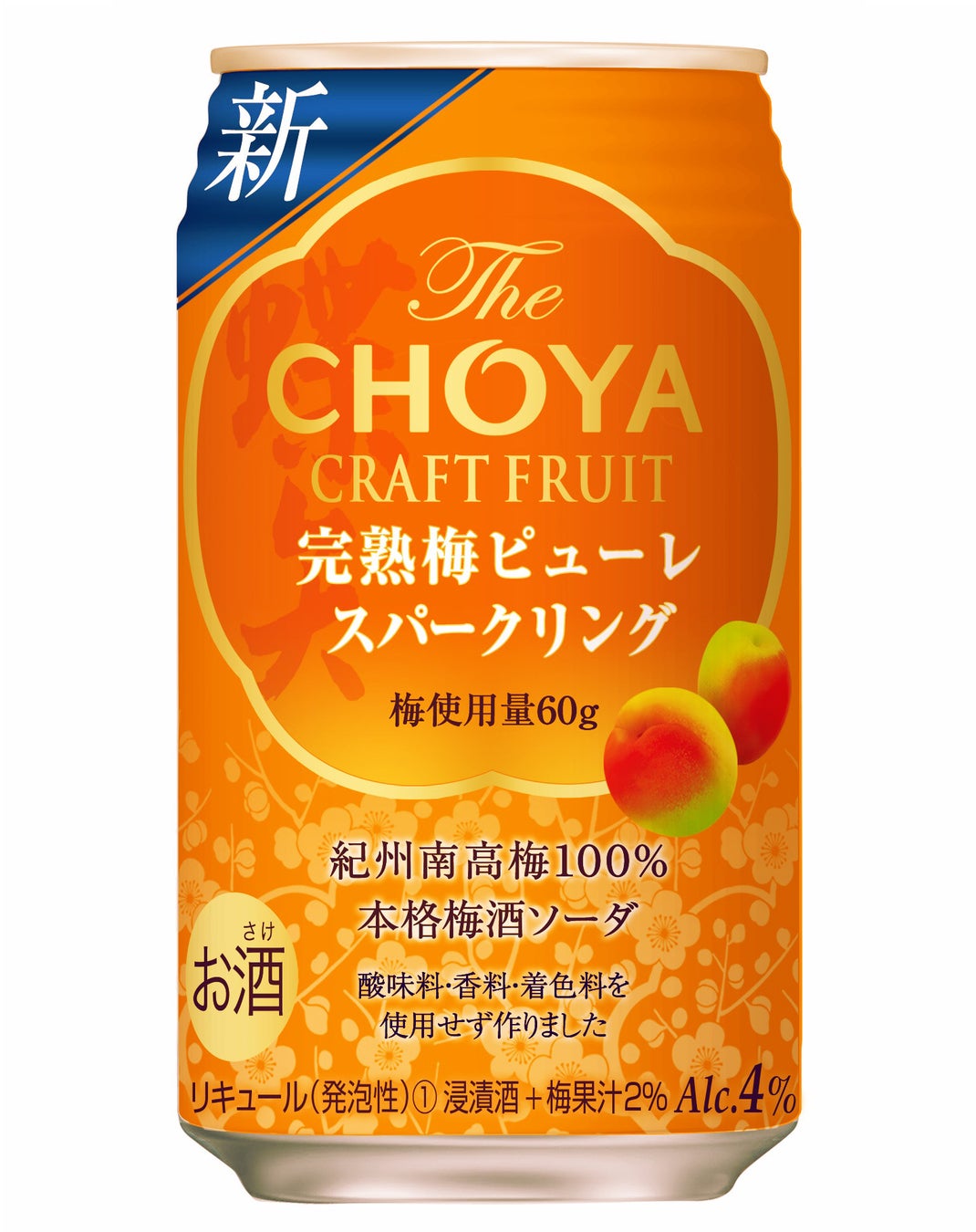 「The CHOYA CRAFT FRUIT 完熟梅ピューレスパークリング」は1年以上熟成させた梅酒にとろりとなめらかな完熟梅ピューレをブレンドし、フルーティで甘酸っぱい果実感と低アルコールで飲みやすさが特長の本格梅酒ソーダです。