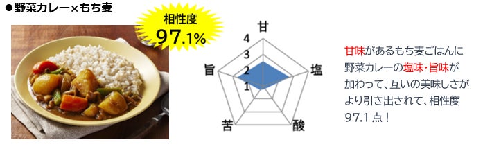 カレーは雑穀が合うことがAIにより証明されました。特に「野菜カレー×もち麦ごはん」は相性度97.1%。