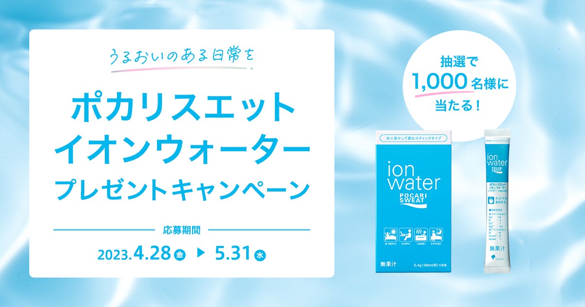 マイページ内のキャンペーンバナーより簡単なアンケートにお答えいただいた方の中から、抽選で1,000名様に日常の水分・電解質補給におすすめの「ポカリスエット イオンウォーター パウダー スティックタイプ」をプレゼントいたします。