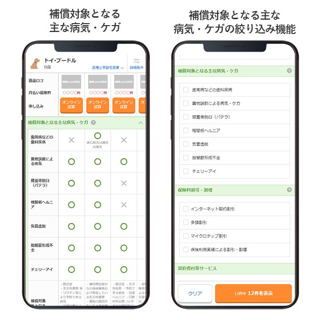 お客さまのニーズに合ったペット保険を簡単に検索できる機能を追加