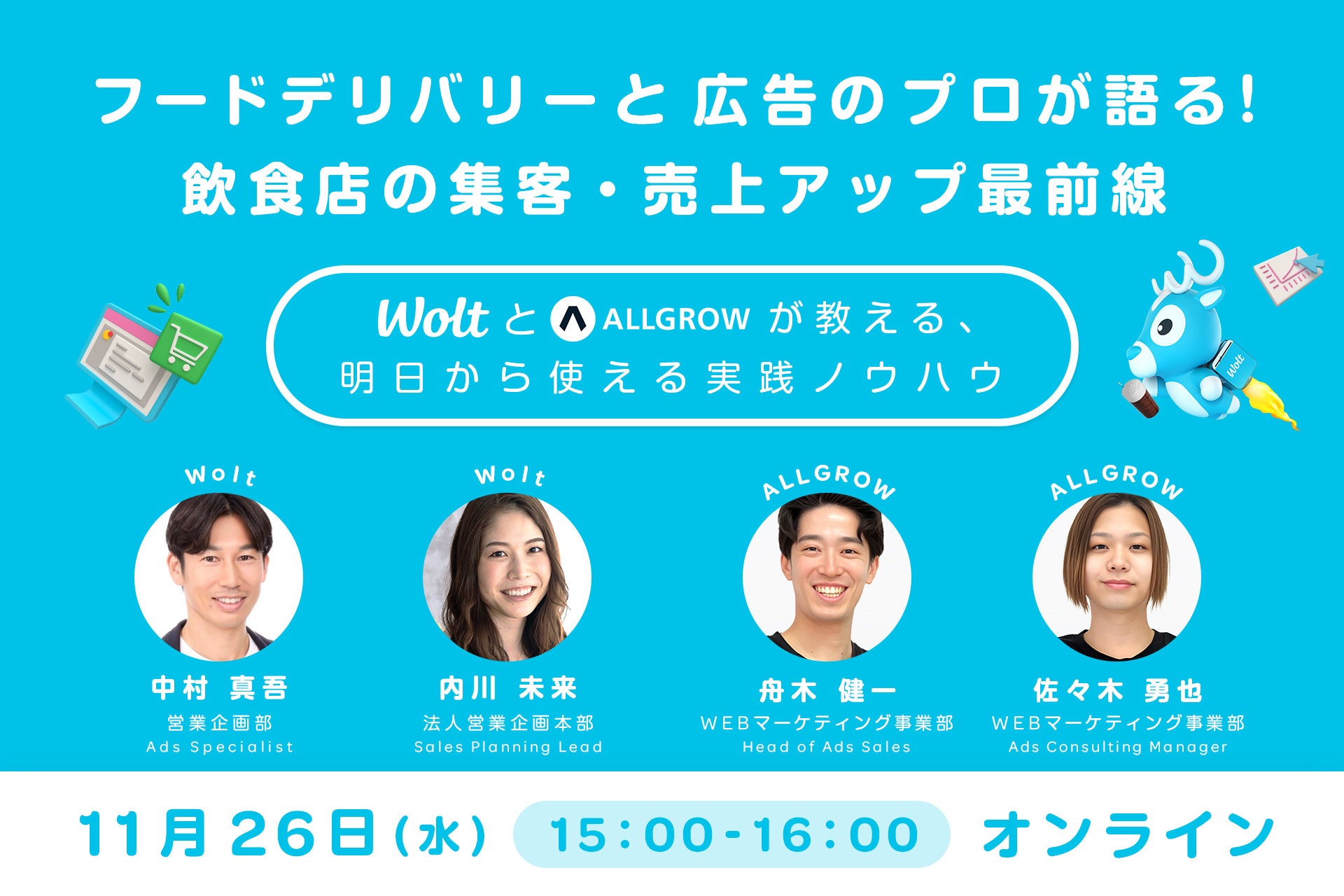 【Wolt × ALLGROW共催】フードデリバリーと広告のプロが語る! 飲食店の集客・売上アップ最前線セミナーを11月26日(水)に開催