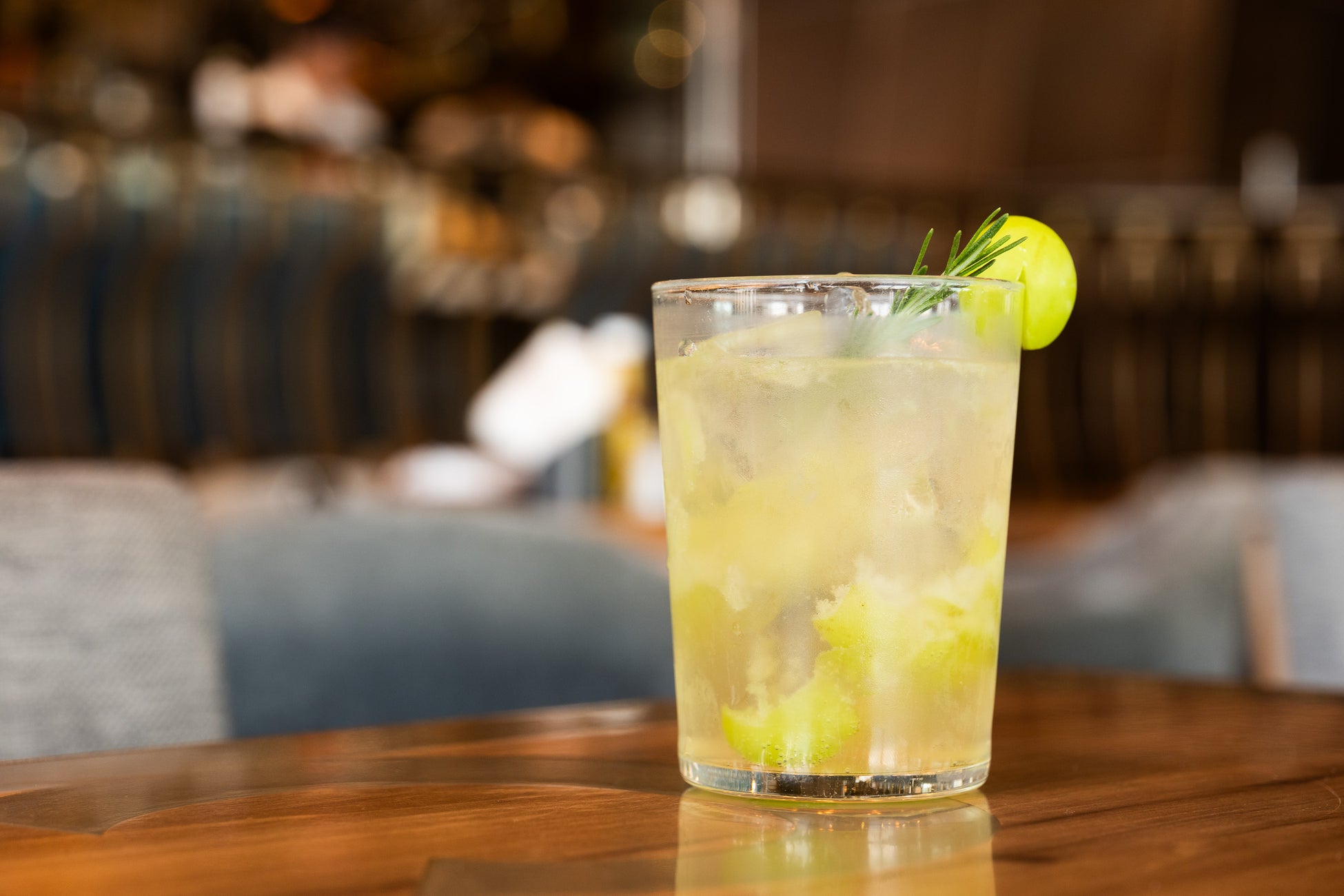 シェリー酒をソーダ&トニックウォーターで割ったスペインスタイルのハイボール"レブヒート”に、今が旬のフレッシュシャインマスカットをたっぷり入れた、すっきり飲めるスパニッシュカクテル。アクセントにエルダーフラワーとローズマリーの香りをプラスしました。マスカットのみずみずしい食感が感じられる、飲みやすくさっぱりとしたカクテルです。