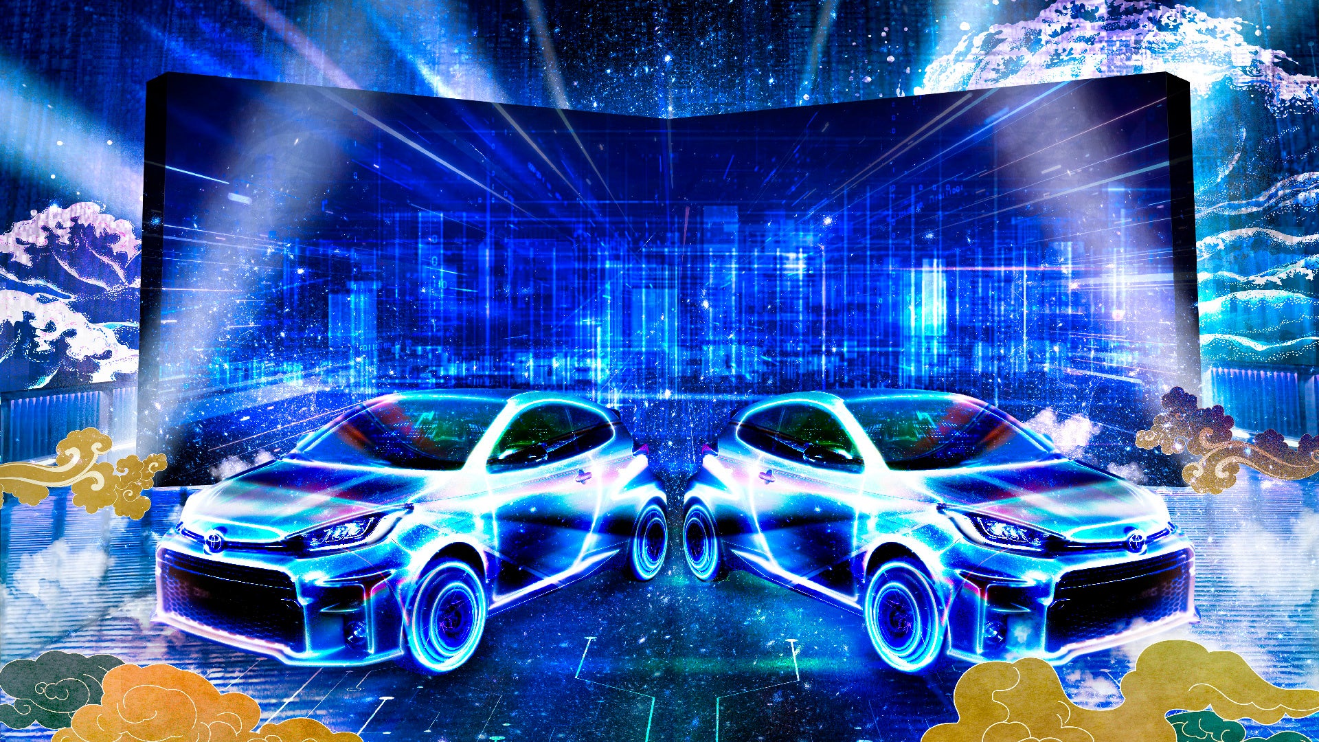 【内容】 「FORUM8 Rally Japan 2022」とのコラボレーションイベントで、2020年に完成した岡崎市の新名所「桜城橋」にディスプレイされた3台の「トヨタ GRヤリス」の車体に、疾走感のあるデジタルアートコンテンツなどのプロジェクションマッピング映像を投影します。