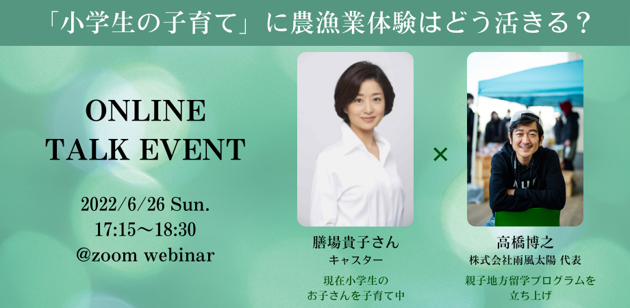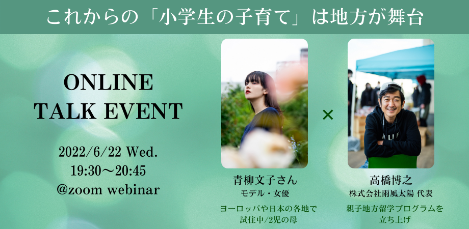 また、プログラム実施に先立ち、「小学生の子育て」をテーマとしたトークイベントをオンラインで開催します。2022年6月22日(水)はモデル・女優の青柳文子さんを、6月26日(日)はキャスターの膳場貴子さんをゲストに迎え、当社代表の高橋博之が対談します。