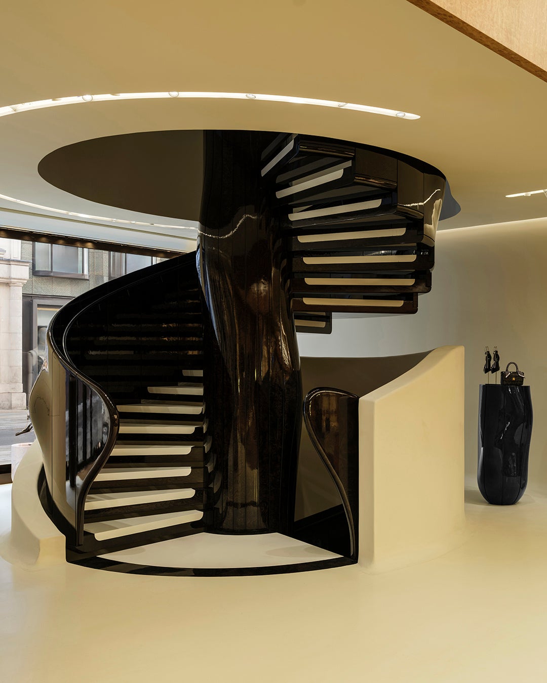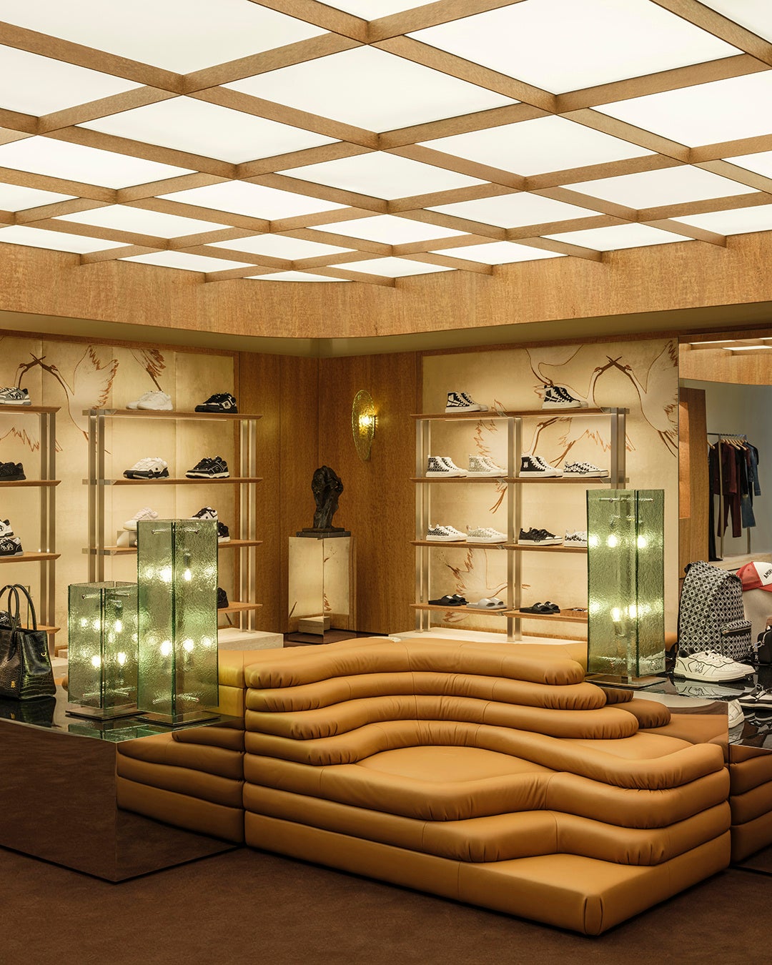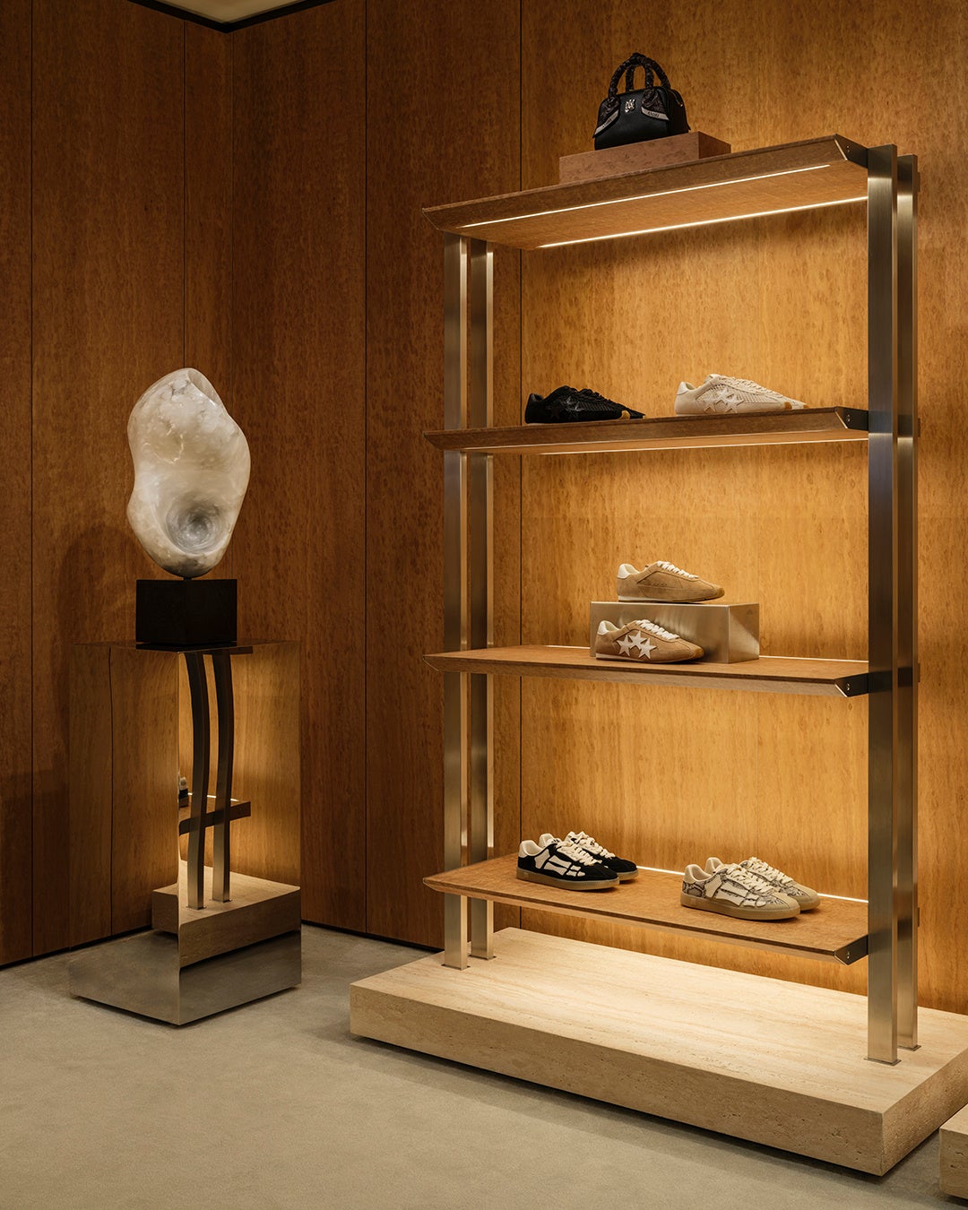 ロンドンの旗艦店は、ハリウッドの真髄をヨーロッパへと持ち込み、上質な素材、重なり合うテクスチャー、そしてアミリの故郷にあるホテルや邸宅のインテリアへのオマージュを通じて、アミリのルーツとインスピレーションを表現しています。これらはロンドンの伝統であるプライベートクラブや高級タウンハウス、そして旗艦店からわずか1ブロック先にあるサヴィル・ロウの紳士服店を反映しつつ調和しています。これらは、卓越したテーラリングとクラフツマンシップに注力するAMIRIの精神と共鳴します。