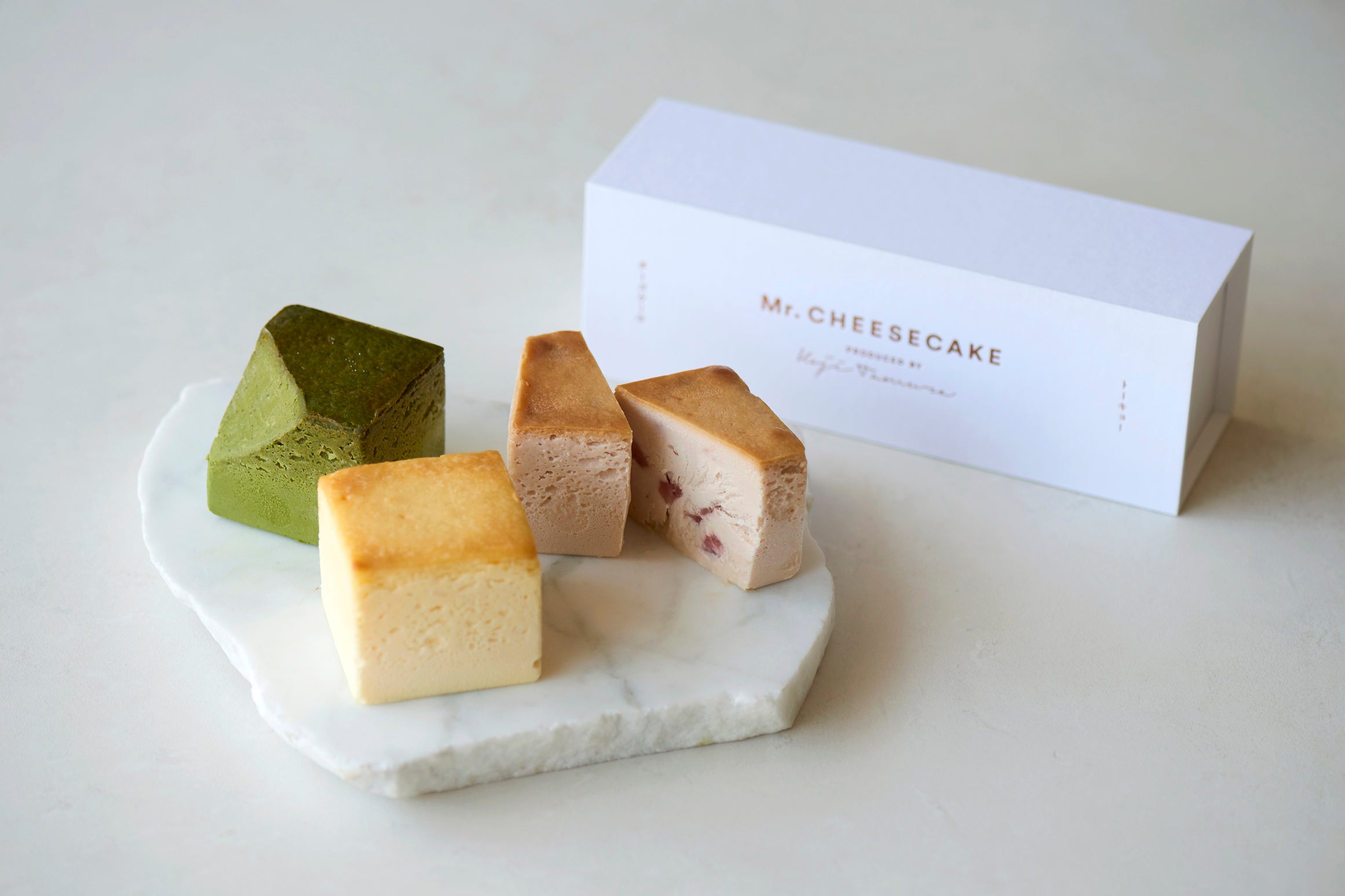 「Mr. CHEESECAKE assorted 3-Cube Box Standard」は、バニラ・レモン・トンカ豆が生み出す甘く爽やかな香りが特長の定番フレーバーに加え、新たに開発したストロベリーが主役の甘味と軽やかな酸味を楽しめるストロベリーフレーバーと、旨みの強い八女抹茶に赤砂糖やマスカルポーネを組み合わせた甘くコクのあるグリーンティーフレーバーの3種を一度に楽しめるアソートセットです。