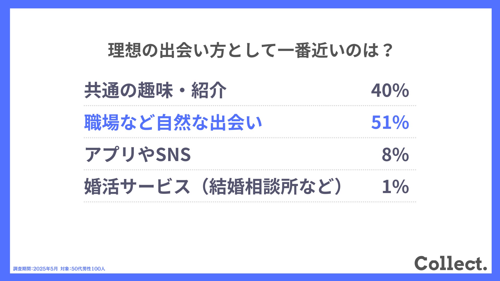 50代の理想の出会いは91%が「リアル派」。アプリや婚活サービス経由はわずか9%【Collect.(コレクト)】