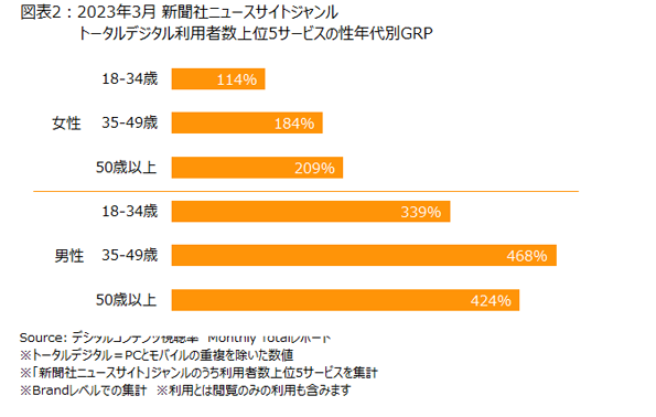 次に、「新聞社ニュースサイト」ジャンルにおける利用者数上位5サイトを合計したターゲットGRP(TARP)