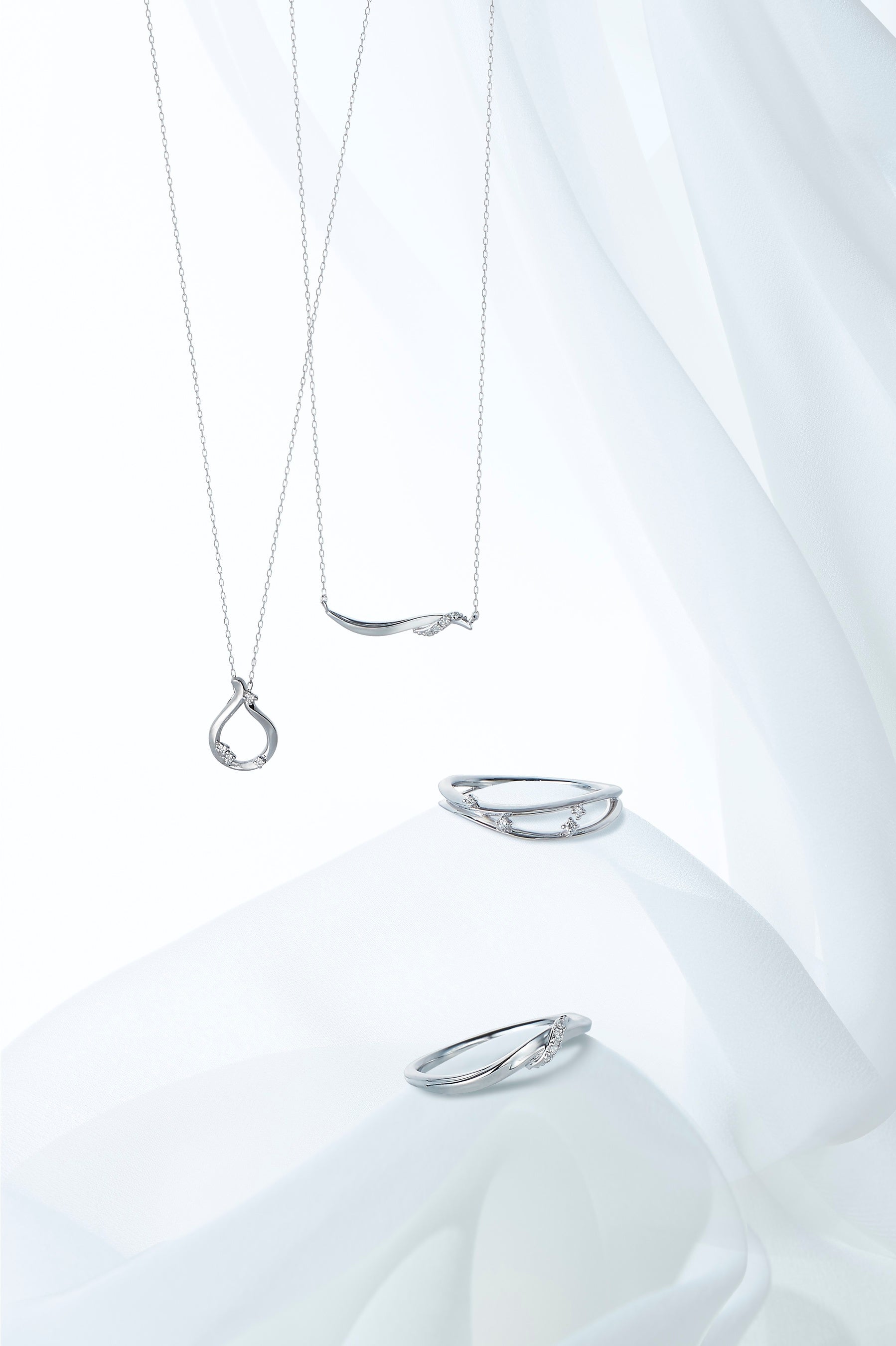 はためいてはひるがえす、風の流れるようなラインをイメージしたしなやかなジュエリーなどがラインナップ。