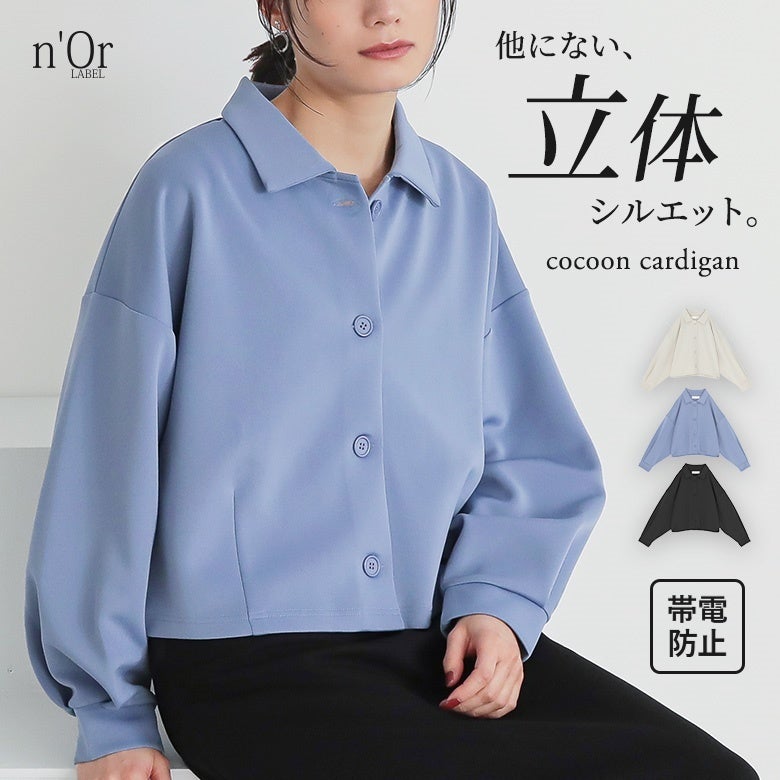 丸みのあるシルエットが印象的な襟付きカーディガン。