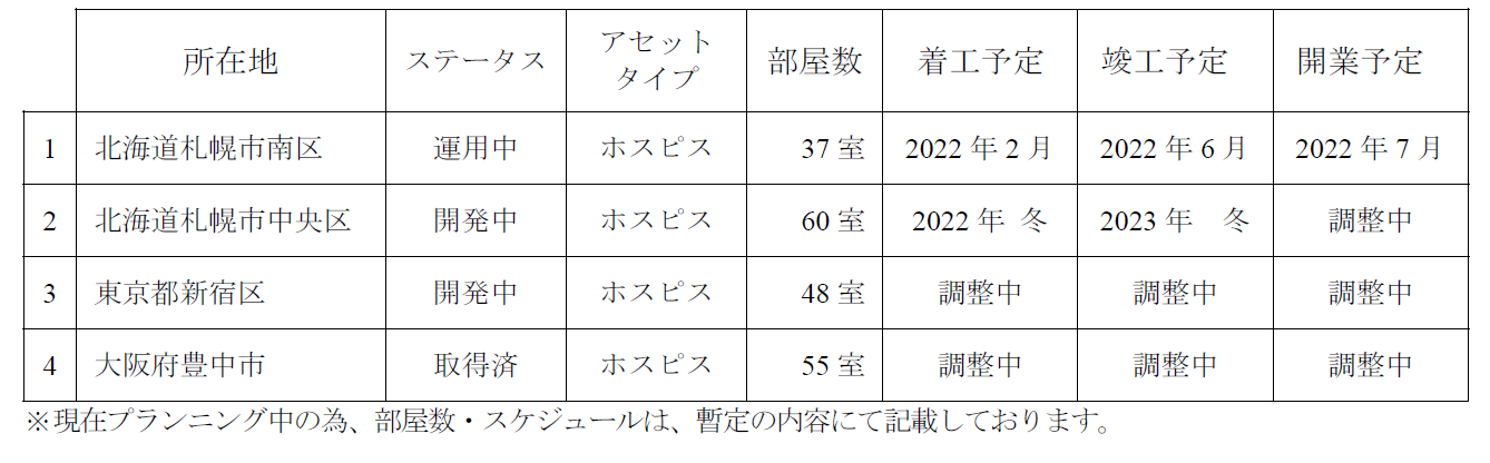 当社は、超高齢社会である日本におけるヘルスケア関連施設の不足という社会的課題に対して、新規のヘルスケア関連施設をマーケットに供給する開発主体としてこの社会的課題に取り組んでおります。このたびヘルスケア関連施設の開発用地として、新たに販売用不動産の取得をいたしました。
