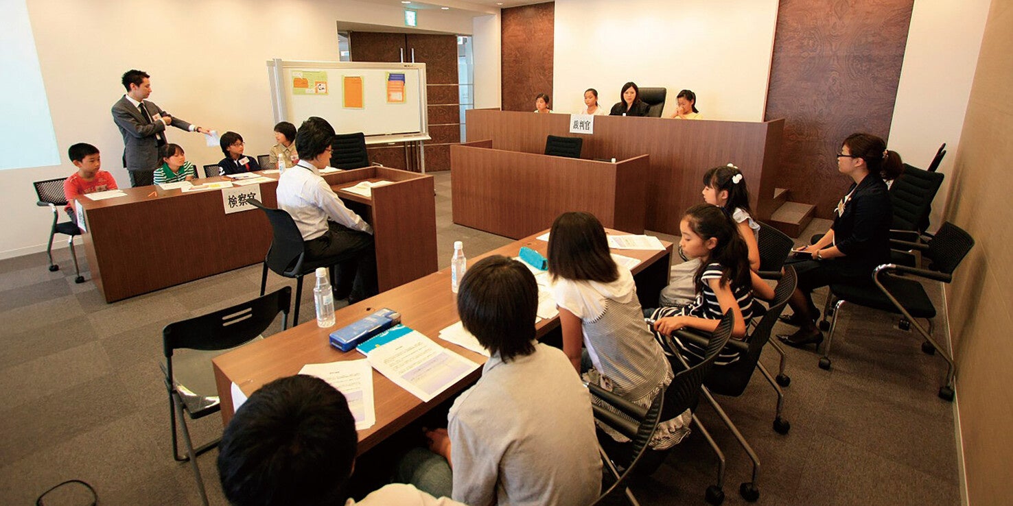 TMI総合法律事務所に所属する弁護士の指導のもと、事務所内の模擬法廷スペースを利用した模擬裁判(刑事)を体験。裁判の仕組み・役割や法律・正義などの概念を考えるきっかけを提供し、子どもたちの“考えるチカラ”を育てます。
