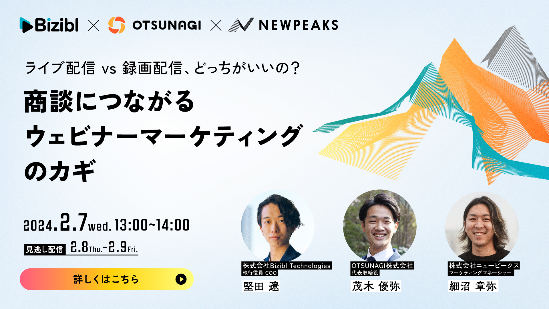 BiziblとOTSUNAGI、NEWPEAKSの3社が共催ウェビナー 『【ライブ配信vs録画配信】商談につながるウェビナーマーケティングのカギ』を開催