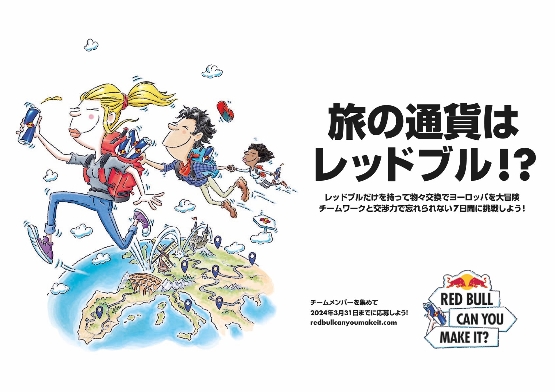 レッドブルだけを持って物々交換でヨーロッパを大冒険 Red Bull Can You Make It? 2024 年明け2024年1月1日(月)から参加者募集開始