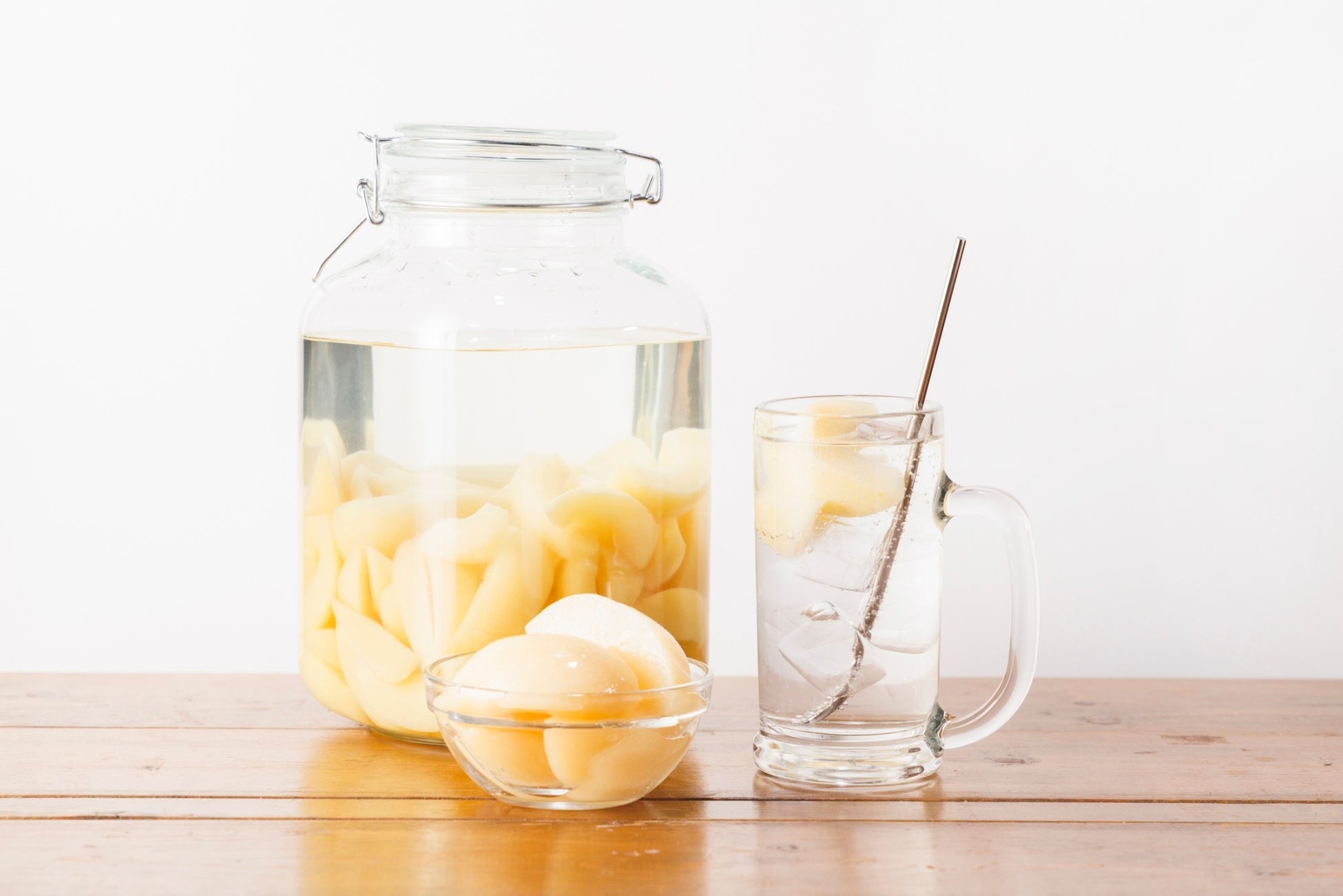 ジンや焼酎にフレッシュフルーツやハーブを漬け込んだ自家製瓶漬け酒です。