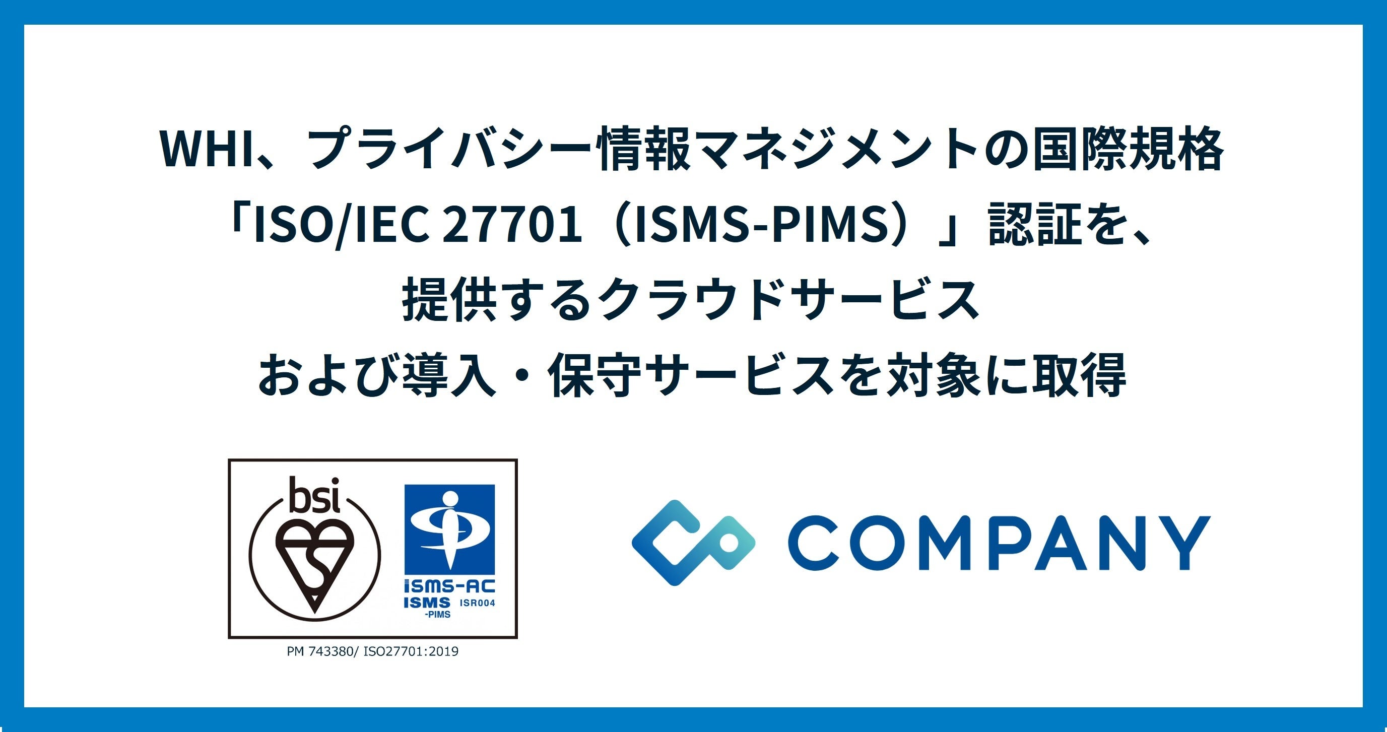 WHI、プライバシー情報マネジメントの国際規格「ISO/IEC 27701(ISMS-PIMS)」認証を、提供するクラウドサービスおよび導入・保守サービスを対象に取得