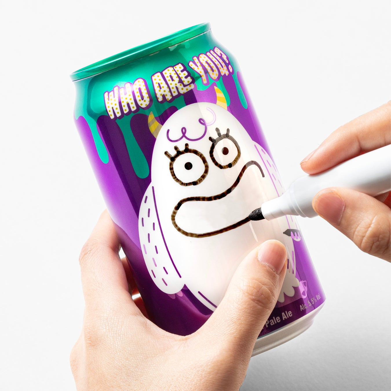 パーティーやキャンプなど多くの人が集まるシーンで便利な缶入りドリンクですが、自分の缶がどれか分からなくなるといった声を聞きます。「お絵描き缶」は、印刷されたキャラクターに自分で思い思いの表情を描き加えることで、自分の缶を一目で見分けられるというコンセプトデザインです。