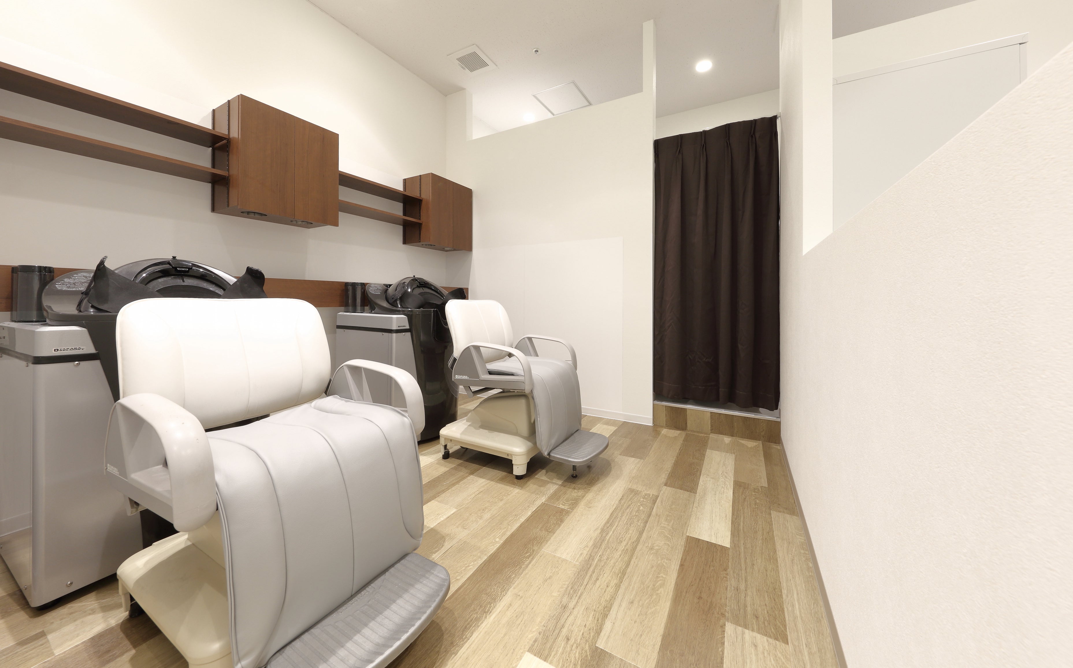 施術後は、セルフブローブースで、自分で髪を乾かしたり、スタイリング剤などを自由に使用できます。スーパー内の一角など、買い物ついでに立ち寄りやすい立地に出店し、関東圏と関西圏に66店舗(※)を展開しています。