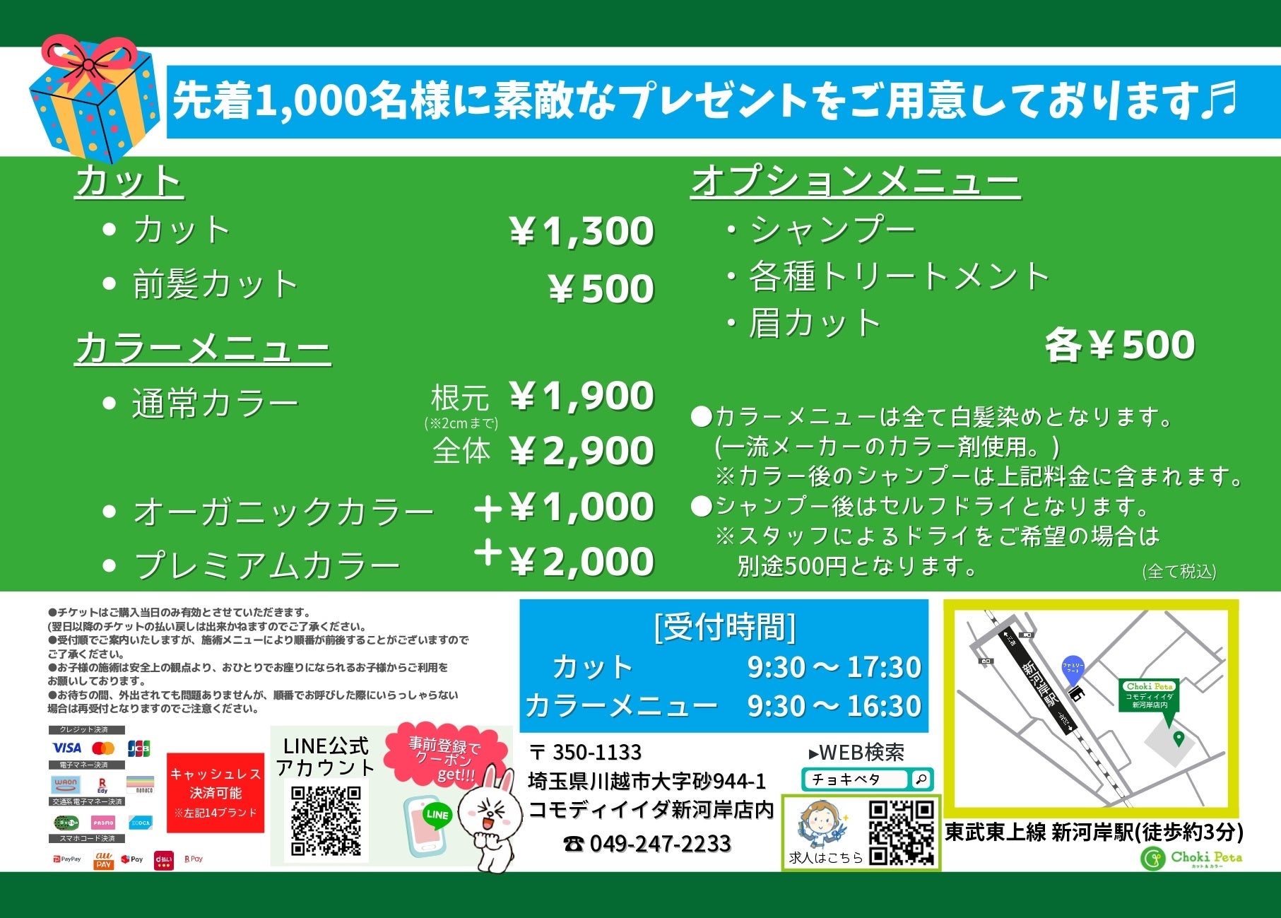 カットカラー専門店 チョキペタ 新河岸店が1月20日(金)オープン