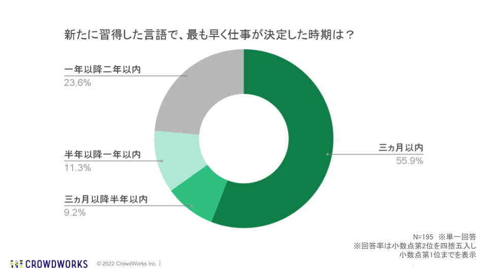 - 新たに習得した言語によって、3か月以内に仕事が決定したフリーランスITエンジニアは約半数