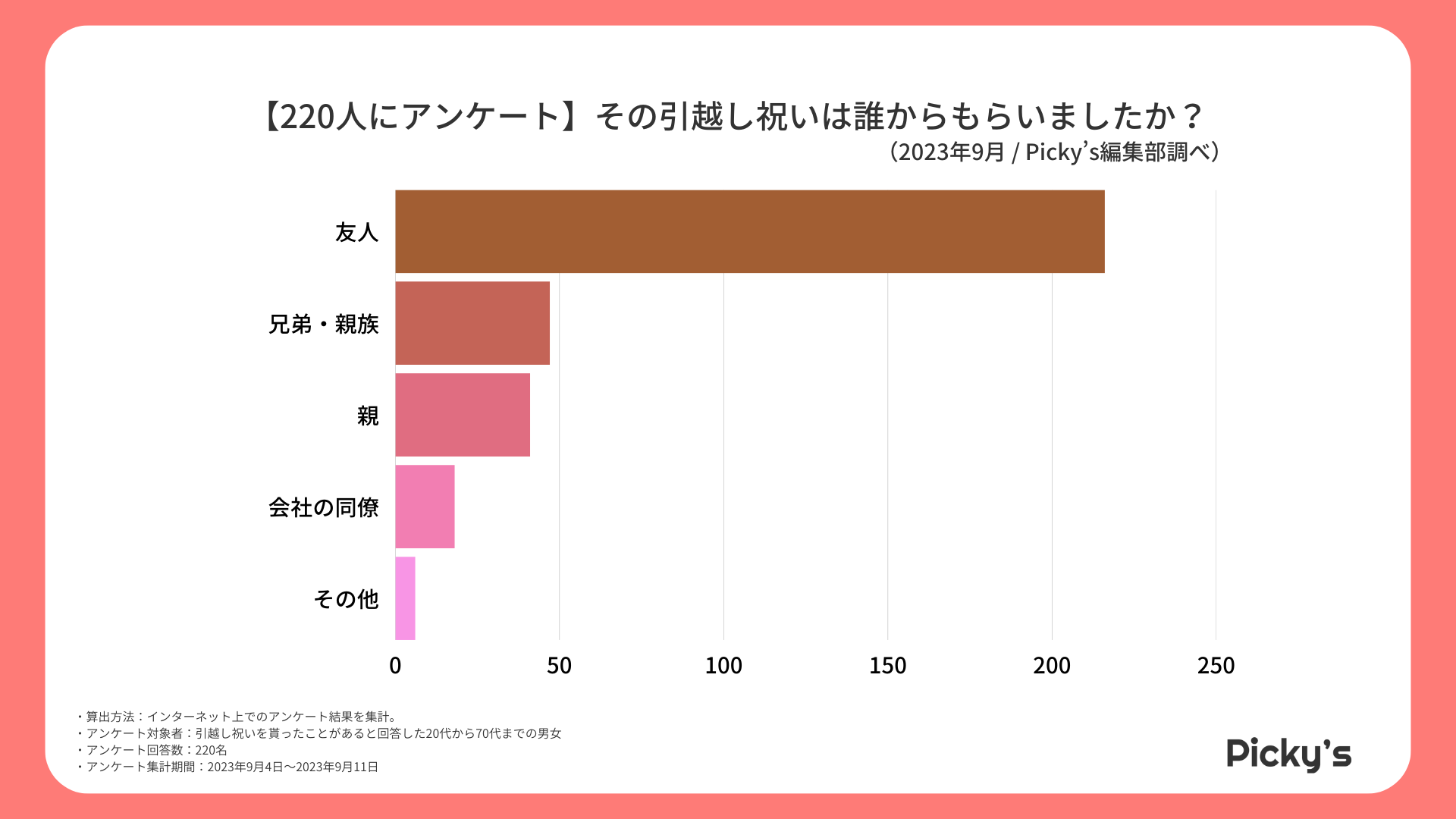 「友人」から引越し祝いをもらったと回答した方が最も多い結果になりました。