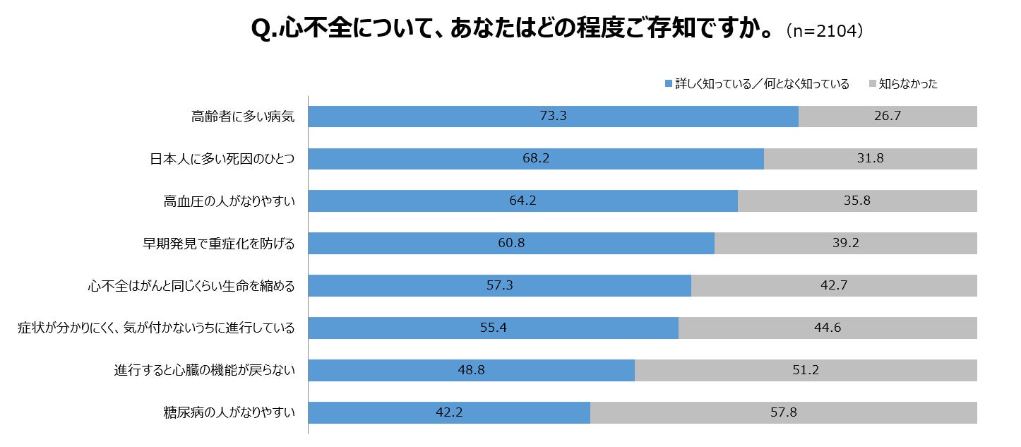 「糖尿病の人がなりやすい」ことを知っている人は半数未満。現役世代は自分事と捉えず心不全