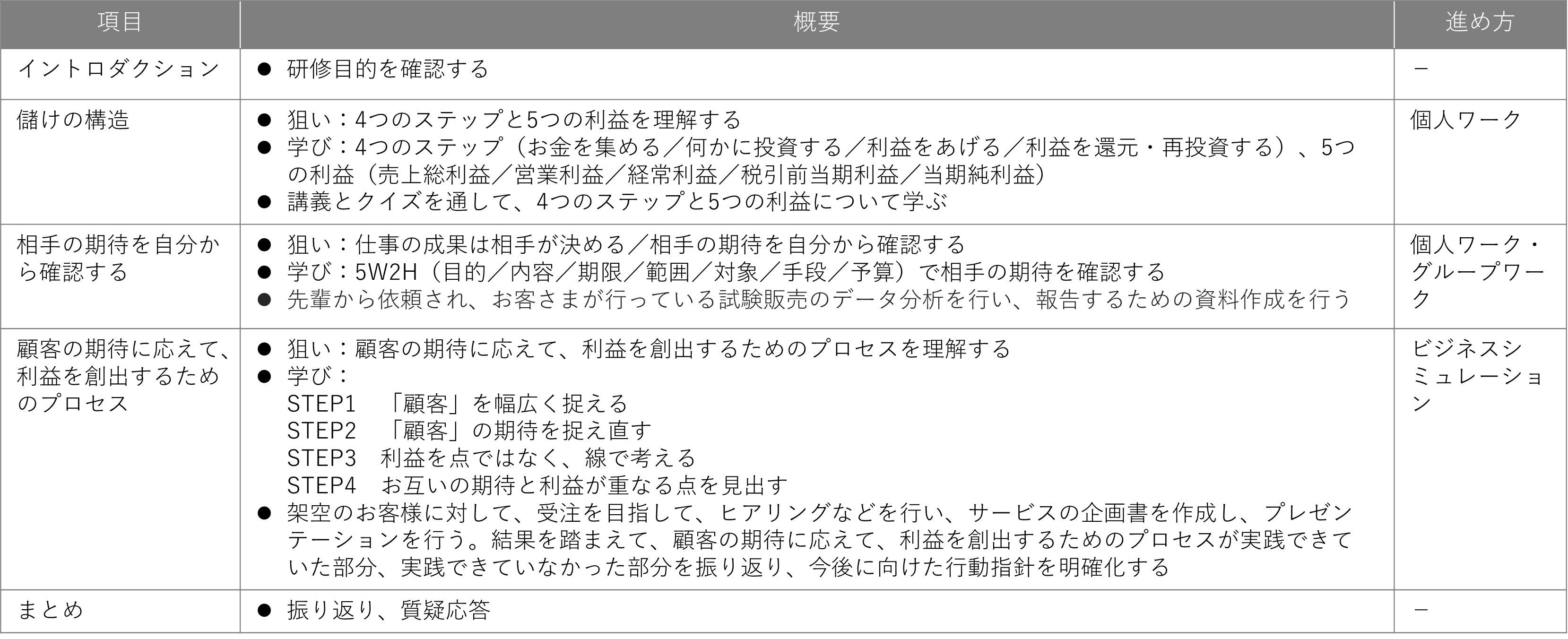 そこで当社は、研究開発職が会社で働く社員として必要な顧客視点×自社視点を身につけることを目指し、本プログラムを開発しました。