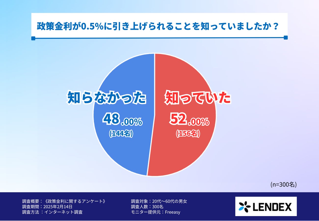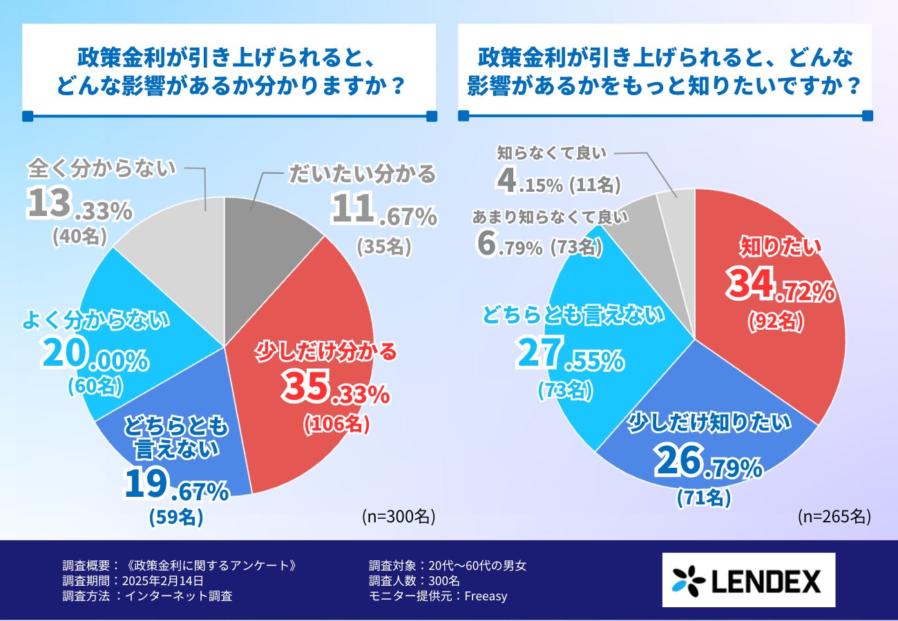 そこで今回、融資型クラウドファンディングサービスを提供する株式会社LENDEX(https://lendex.jp )は、20代から60代の男女を対象に、「政策金利」に関するアンケート調査を行いました。