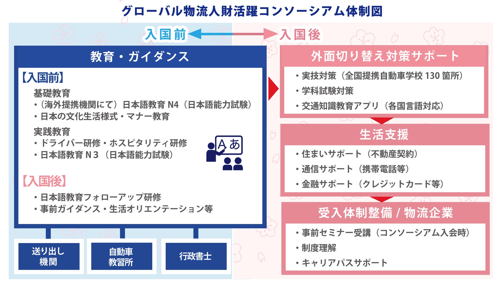 本コンソーシアムは、「育てる・支える・つなぐ」をキーワードに、海外の教育・送り出し機関と連携 した育成から、国内企業への定着支援までを一気通貫で支援するスキームを構築。性別や職種、配送対象(ToC/ToB)を問わず、物流業界の“誰もが参加しやすい人財プラットフォーム”の実現に向け、現場起点の取組みを推進してまいります。