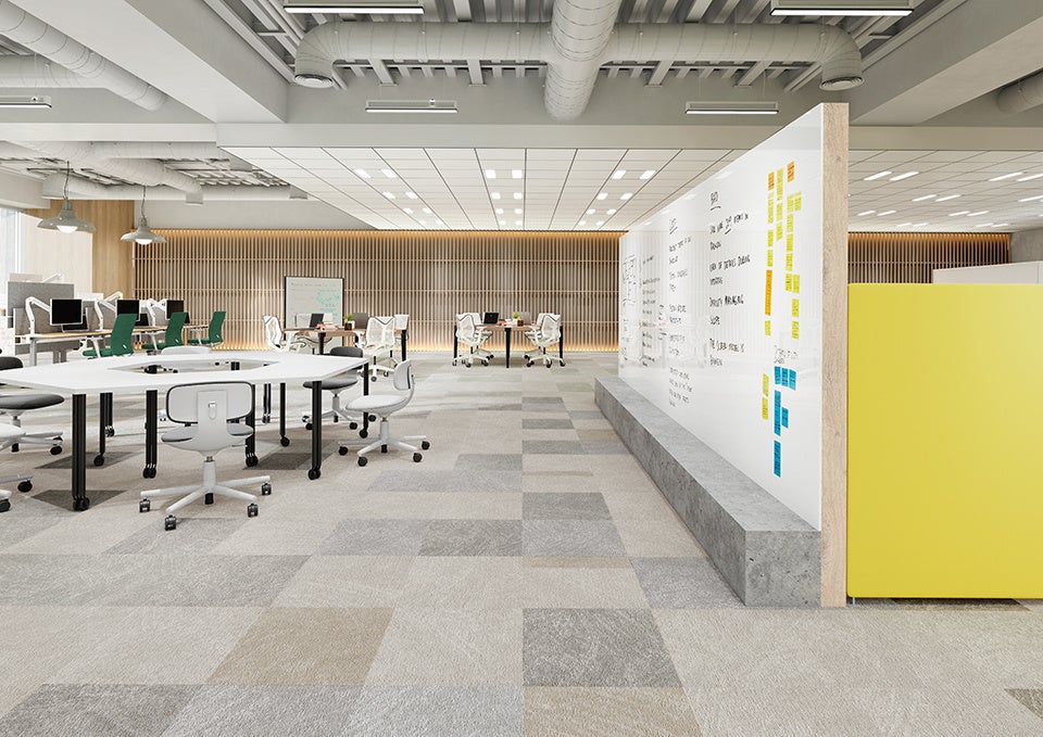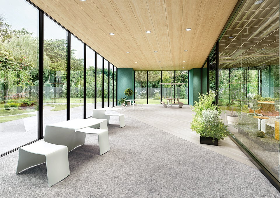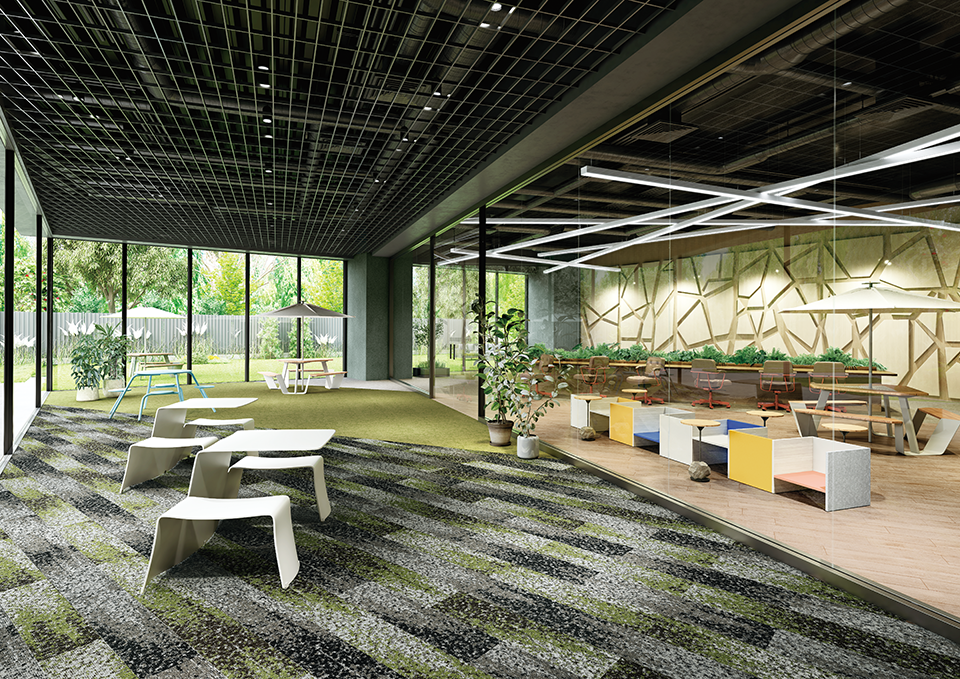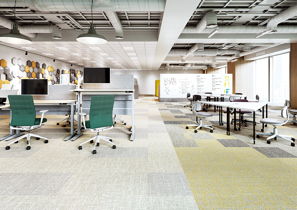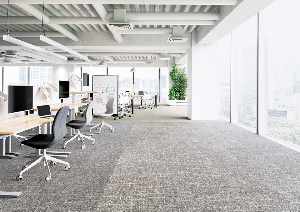 床って、採光だ。「明るく感じる空間」をつくるカーペットタイルを増点。