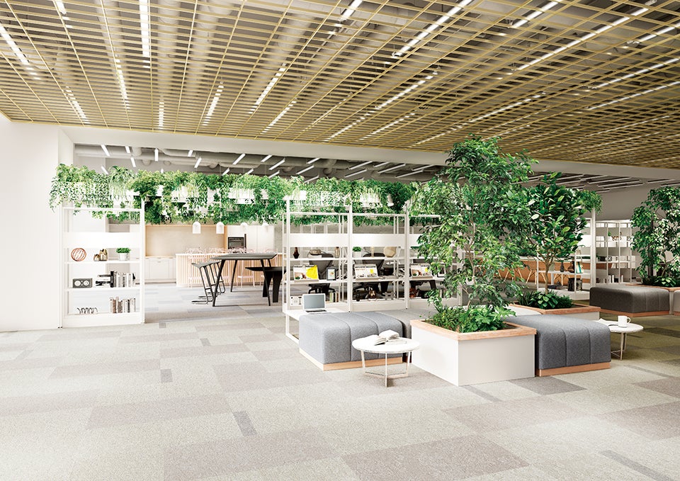 バイオフィリックデザインを取り入れたオフィスイメージ。