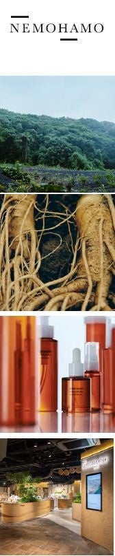 NEMOHAMO はブランド創設より、環境に配慮したサステナブルな製品を展開してきました。有機JAS 認証を取得した自社農園や里山で育った植物を原料とし、エキスを抽出した後の残渣は堆肥として利用。工場のエネルギーは100%再生可能エネルギーを使用しているため製造工程において排水や排煙を一切出しません。また容器には再資源化可能なガラス容器や、通常の樹脂と比較して、製造から廃棄までのCO2 の排出量を約7 割削減できるバイオマスPE などを採用し、石油由来の容器使用量の削減に取り組んでいます。