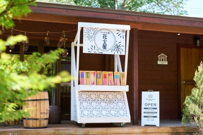 本プランをご予約の方は、リソルの森のグランヴォーショップに新設された「リソルの森 花火屋」で取り扱っている手持ち花火を、お一人様10本プレゼント。グランピングエリアの花火専用エリアにて、17:00~20:00の時間帯でお楽しみいただけます。