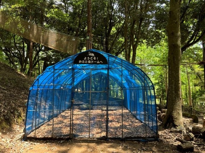 リソルの森内にある自然共生型アウトドアパーク「フォレストアドベンチャー・ターザニア」に、今年もカブトムシと触れ合える「かぶと虫ドーム」が2025年7月19日(土)から8月17日(日)の期間限定で登場します。