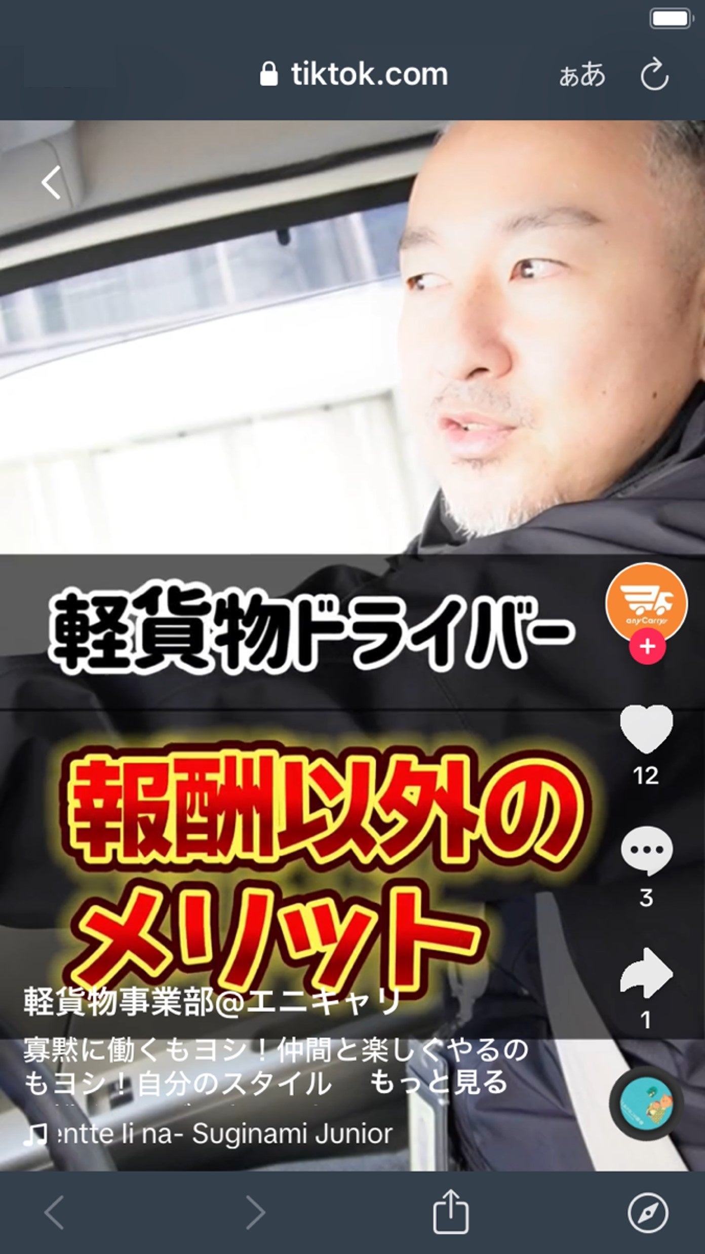 エニキャリTikTok公式アカウント:https://www.tiktok.com/@keikamotsu.anycarry