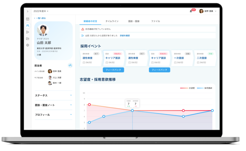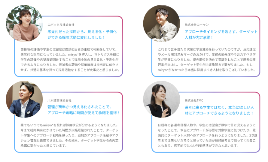 など、これまでにない魅了づけにフォーカスした採用管理システムとして評価をいただいています。