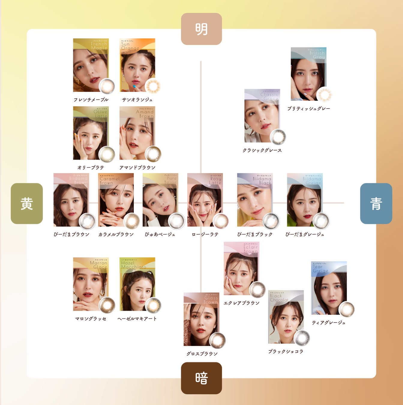 全部で18種類。たくさんビジュアルチェンジをしての撮影でしたが、種類が豊富で着用するレンズによってすごく印象が変わるので、皆さんも絶対に自分の好きなカラーに出会えるはず。