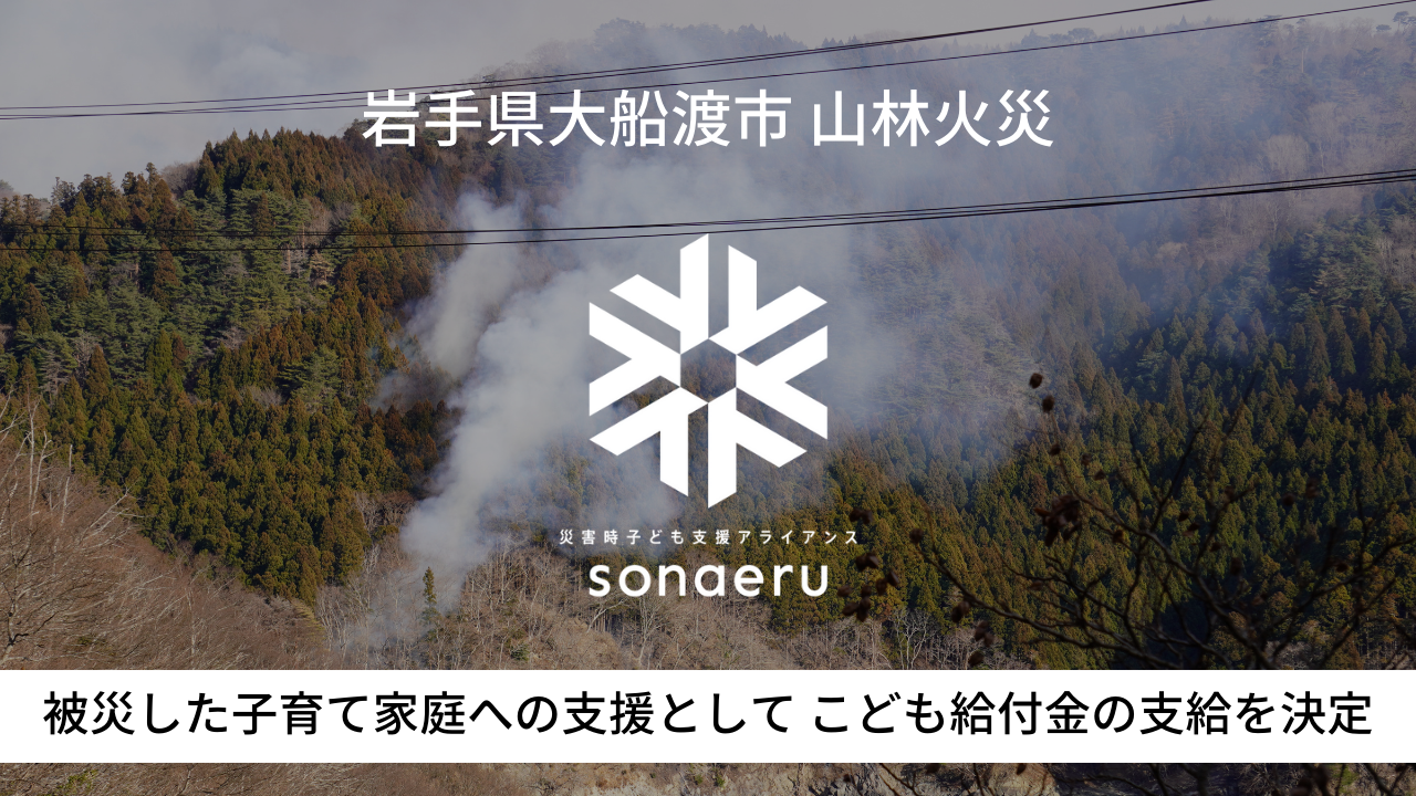 大船渡市山林火災の被害を受けた子育て家庭への緊急支援「カタリバこども給付金」の支給を決定