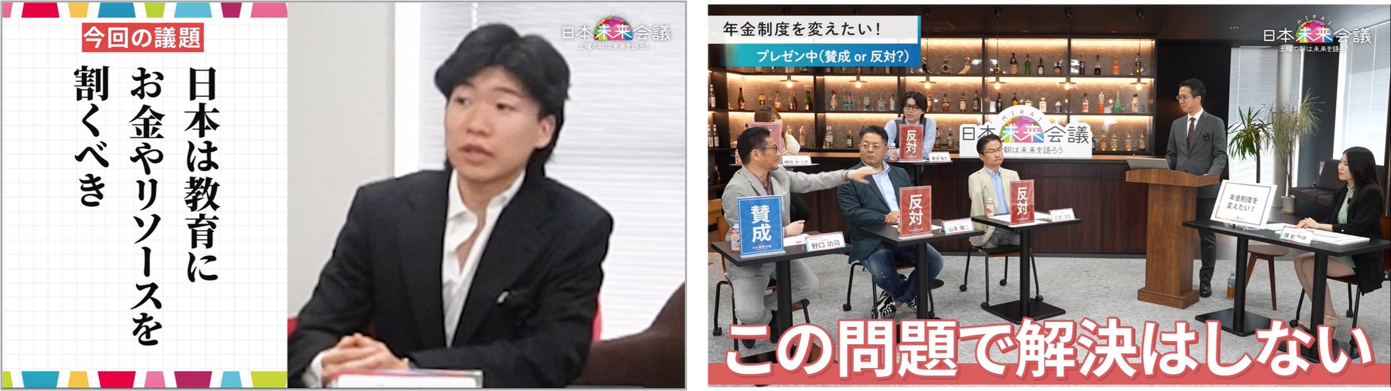『日本未来会議』は、「土曜の朝は未来を語ろう」をキャッチコピーに、日本が直面する政治、経済、教育、社会制度などの課題に対し、一般公募のプレゼンターが提言を行い、メインキャストと共に議論を交わす番組です。知的好奇心旺盛な20〜30代のビジネスパーソン層に向けて、未来を考えるきっかけを提供しています。
