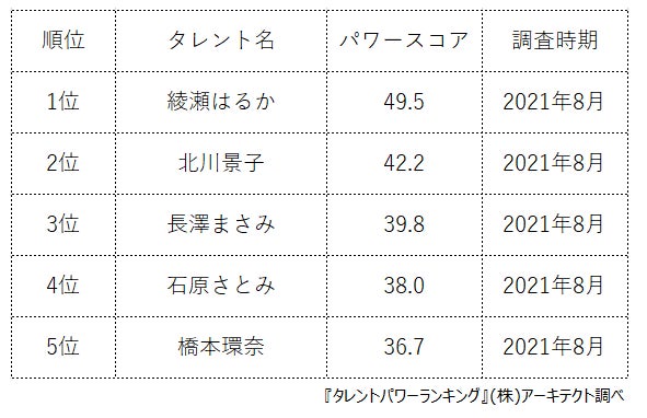 TOP5入りを果たした女優は、国民的女優として広く親しまれている女優がランクイン。