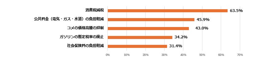 望む対策トップ3は消費税減税、公共料金減、コメ価格抑制