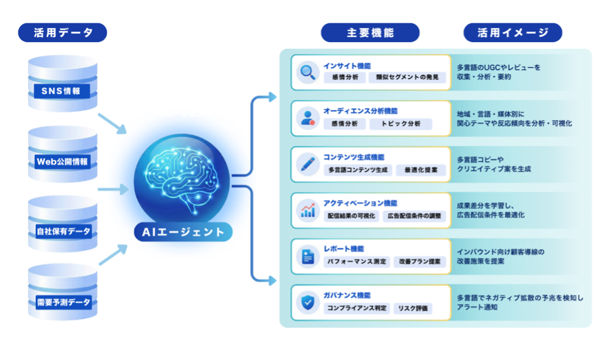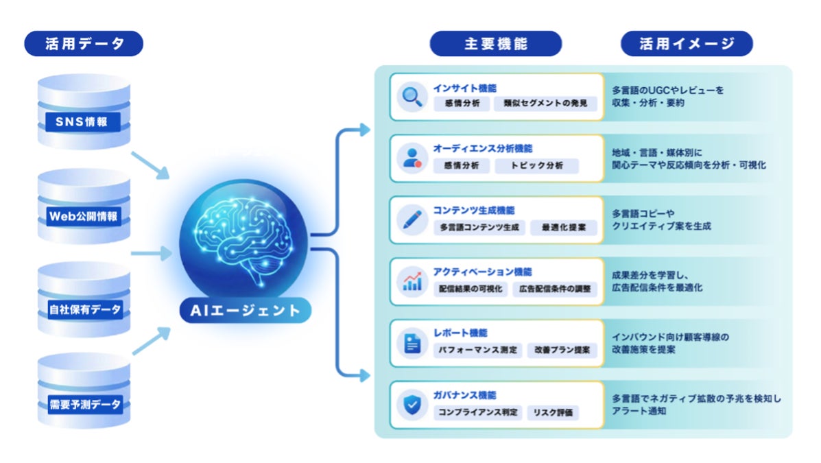 本取り組みでは、ソニーネットワークコミュニケーションズ様が培われた「Prediction One」をはじめとするマーケティングソリューションと当社の技術を融合させ、データ分析から施策立案、実行、効果測定、改善提案まで、AIエージェントが自律的に支援する環境を実現してまいります。
