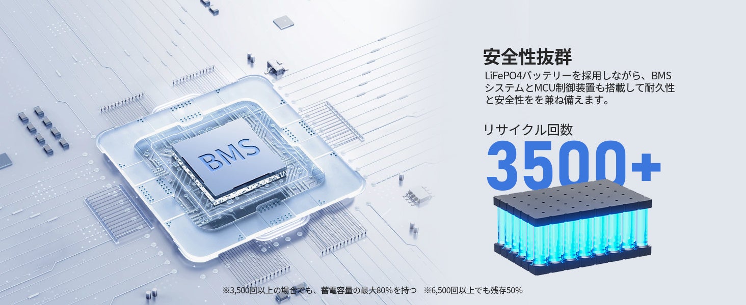 ➤安全保障を提供:独自のBMS搭載、リン酸鉄リチウムイオン電池採用